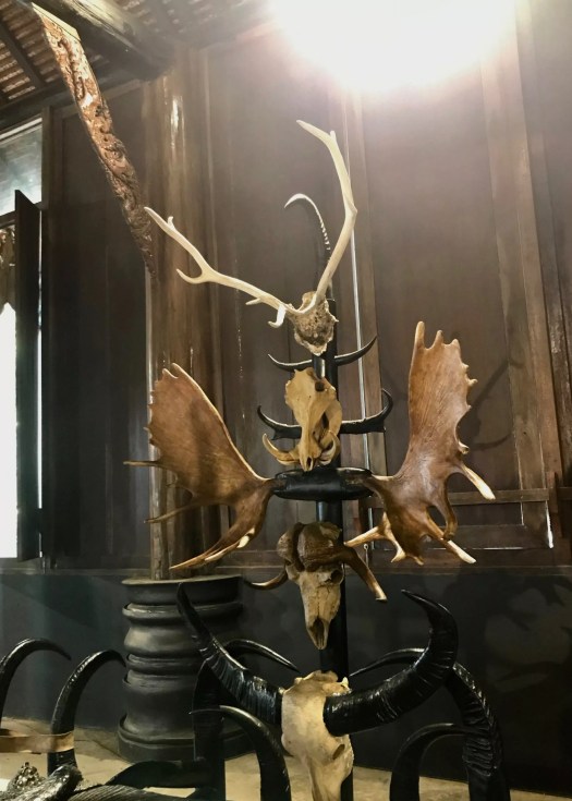 Inside, the bones and pelts of thousands of dead animals are posed in ways meant to invoke thoughts about death, the afterlife, and resurrection. Various sculptures inspired by traditional Thai and local Lanna handicrafts rest amongst the taxidermy. There’s also a lot of dicks. Carvings of genitals even label the respective men’s and women’s restrooms.