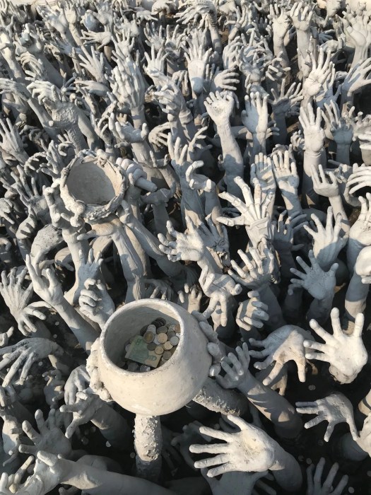 Wat Rong Khun, as the temple is known in Thai, is the life’s work of another artist, Chalermchai Kositpipat. It was a regular temple but had fallen into disrepair by the end of the 20th century. Chalermchai has since been investing his own money to turn it into a center of Buddhist learning and meditation. Even though they don’t expect ot finish it unitl 2070, it’s an impressive work in progress.